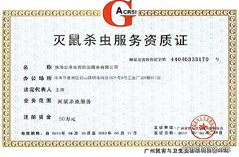 中國、珠海有害生物防治協會A級資質認證